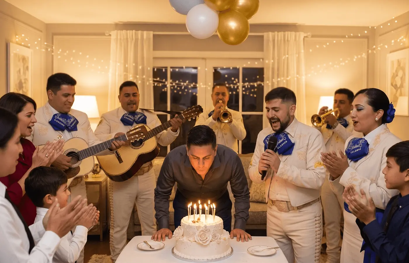 La familia cantando junta, la cara de sorpresa y ese abrazo que solo la música en vivo puede provocar. Un cumpleaños con mariachi no se olvida jamás.